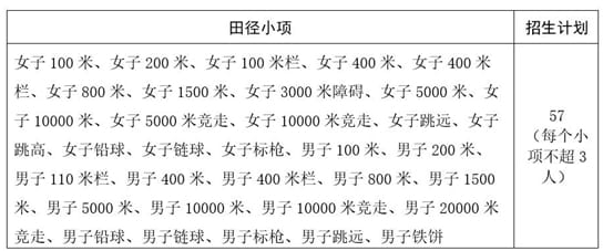 (二)田径项目:57人。